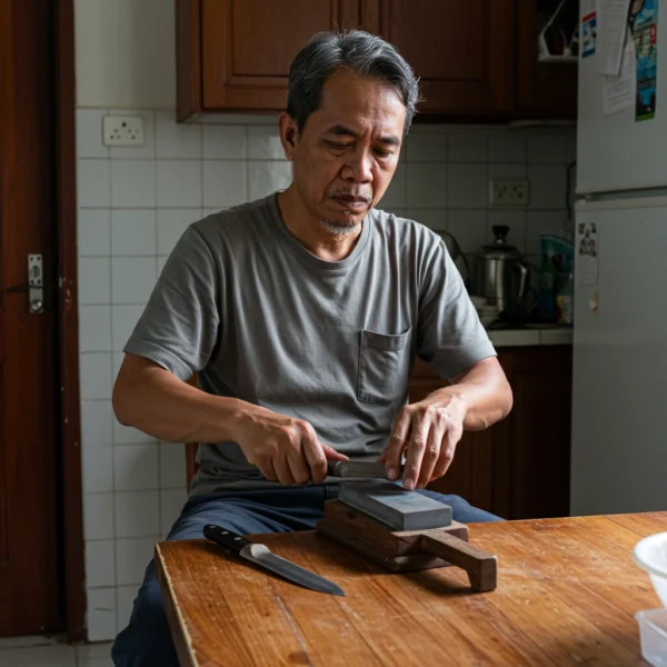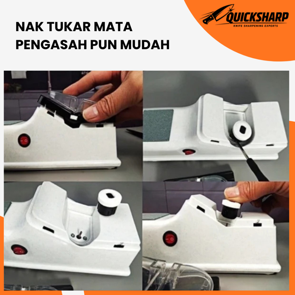 Hanya 1-2 minit untuk pisau kembali tajam – lebih pantas dari cara manual.