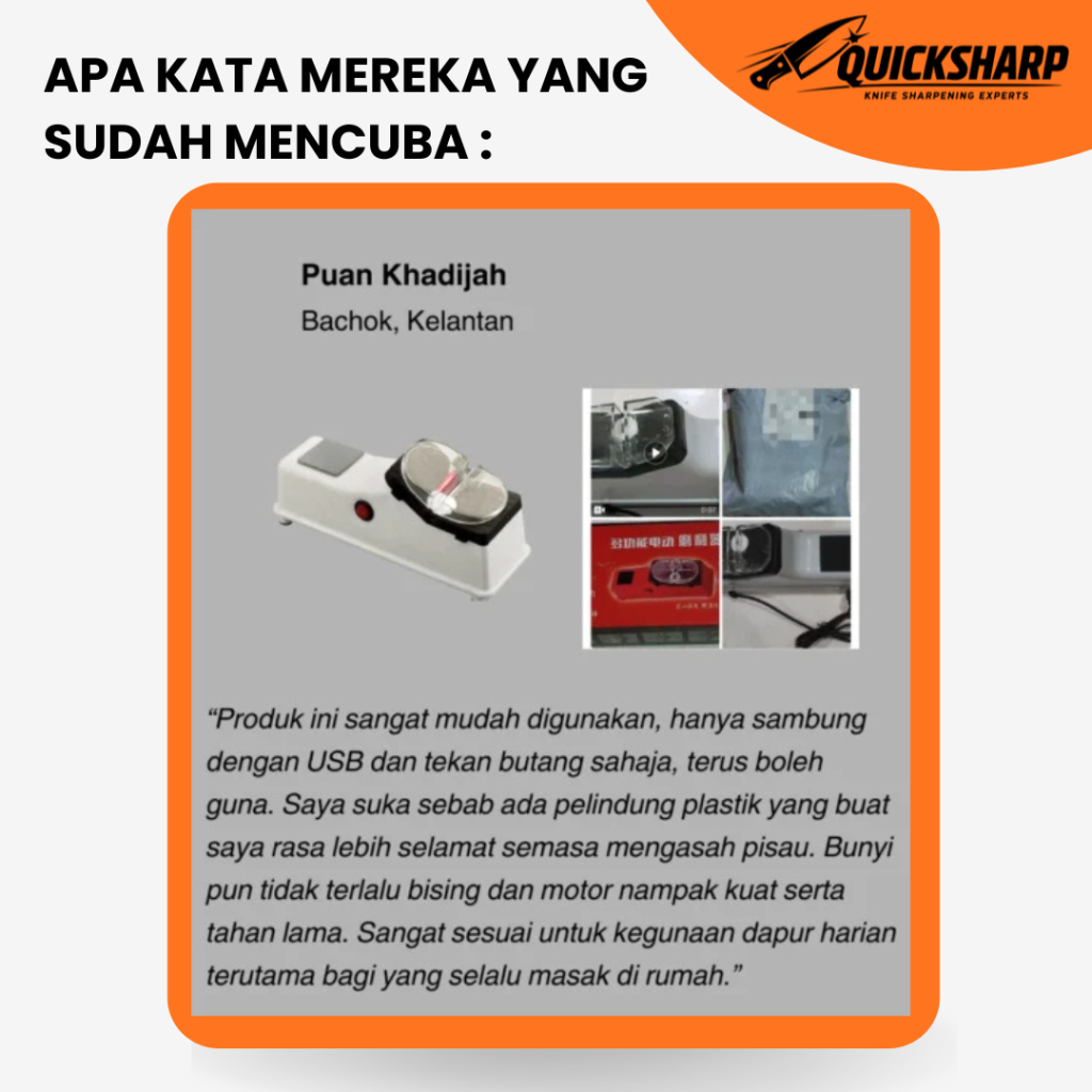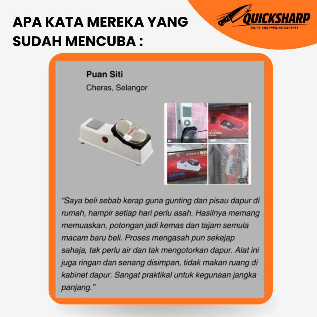 “Selamat, Jimat masa dan tenaga anda, hanya 1 ke 2 minit sahaja dah tajam “
